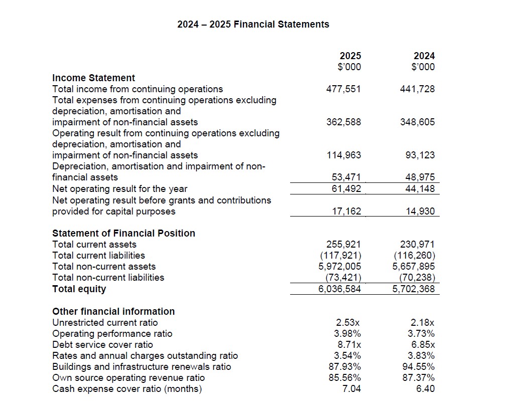 The 2024/25 Financial Statements provide information in relation to Council’s financial performance and position and comprise of the General Purpose Financial Statements and Special Schedules.